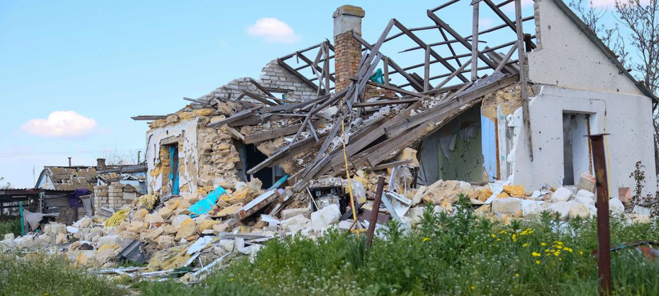La guerra en curso ha provocado daños generalizados a la infraestructura civil en Ucrania, incluida esta casa en la región de Nicolaiev.
