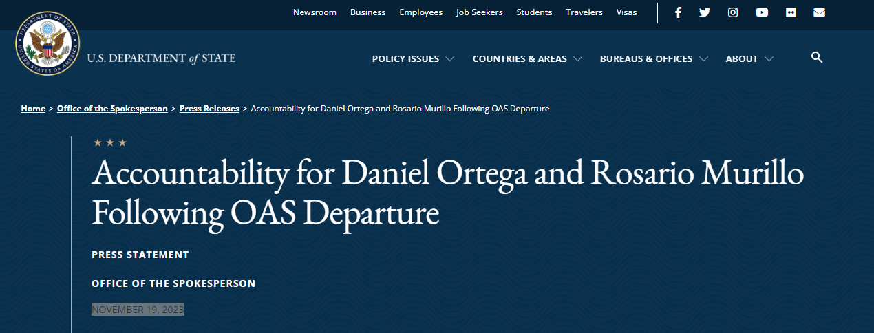 Fuente: https://www.state.gov/accountability-for-daniel-ortega-and-rosario-murillo-following-oas-departure/